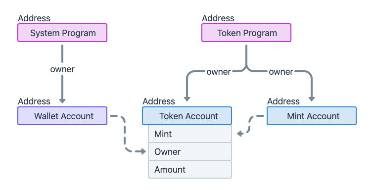 - Token Account: A Token Account tracks the individual ownership of tokens for a specific mint account.